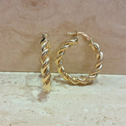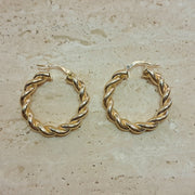 9 carat yellow gold 1 inch twist hoop ear-rings.