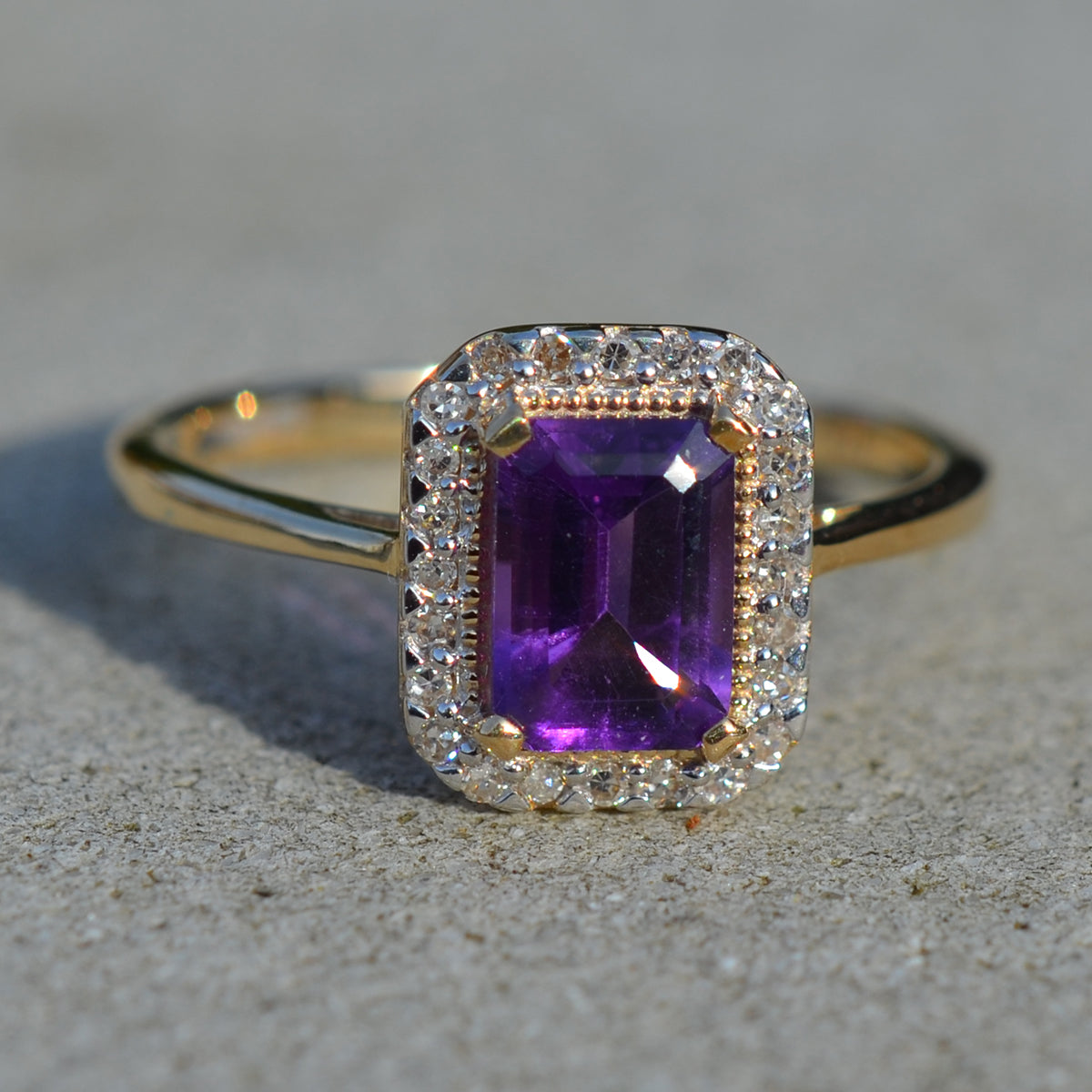 9ct Yellow Gold Amethyst & Diamond Cluster Ring