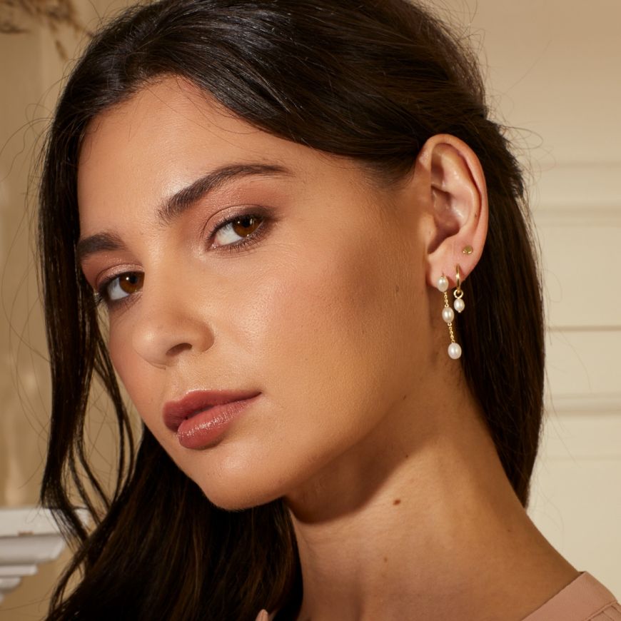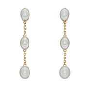 9ct Yellow Gold Trio of Pearls Drop Earrings