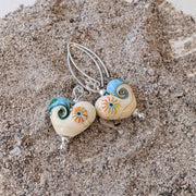 Beach Art Glass - Sand & Sea Heart Drop Earrings