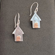 These earrings also have a seagull cut out above the door. The earrings are fitted with silver hook.