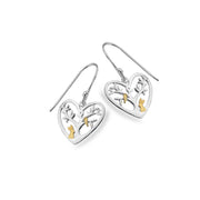 Sterling Silver & Gold Plated Heart Tree of Life Drop Earrings