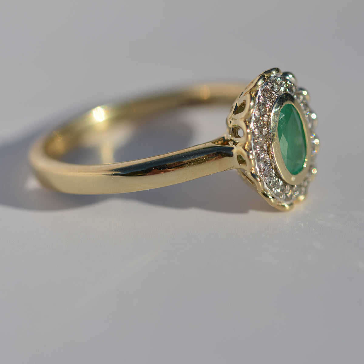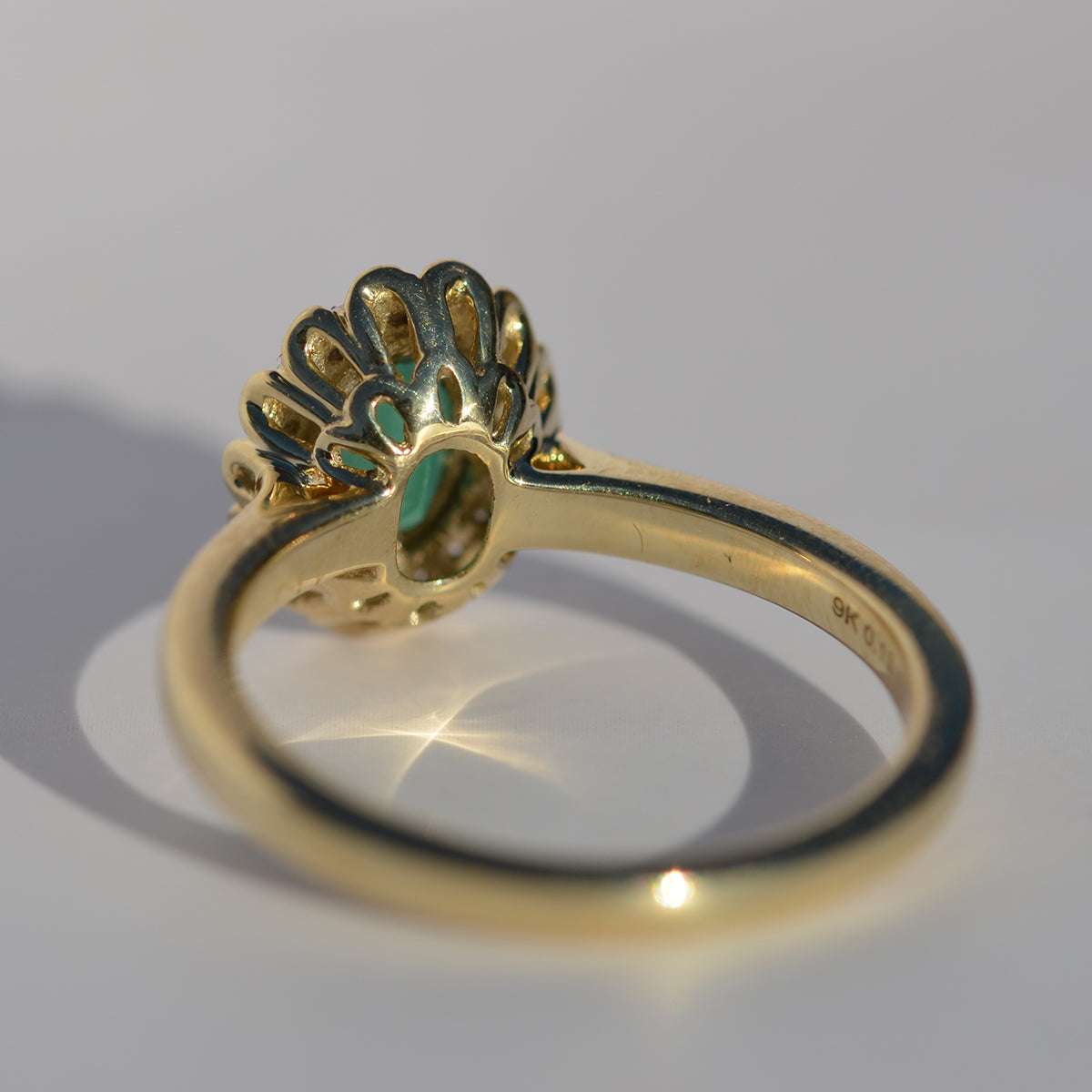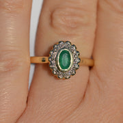 9ct Yellow Gold Emerald & Diamond Oval Cluster Ring