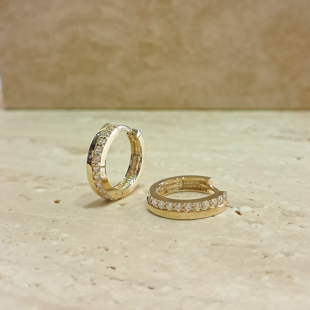 9ct Yellow Gold & Cubic Zirconia Huggie Hoop Earrings