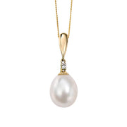 Fresh water pearl and diamond pendant, set in 9ct yellow gold, The pendant is designed in a tear drop shape.