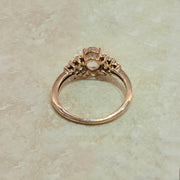 This gorgeous second-hand 9 carat rose gold ring has a Phenakite centre stone and white topaz stones in the shoulders.