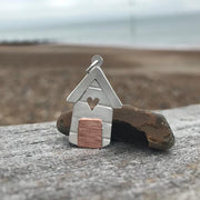 Handmade Medium Silver Beach Hut with Heart Cutout Pendant