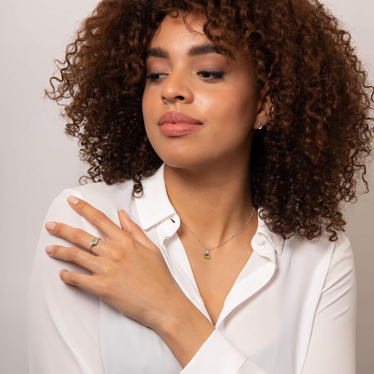 Golden green peridot perfectly complimented by ice white topaz in this stunning 9ct white gold necklace.