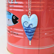 Beach Art Glass - Ocean Waves Long Heart Pendant