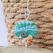 This lovely pendant is handmade using Lampwork , a centuries old form of glasswork that creates beautiful colours and shapes in glass.