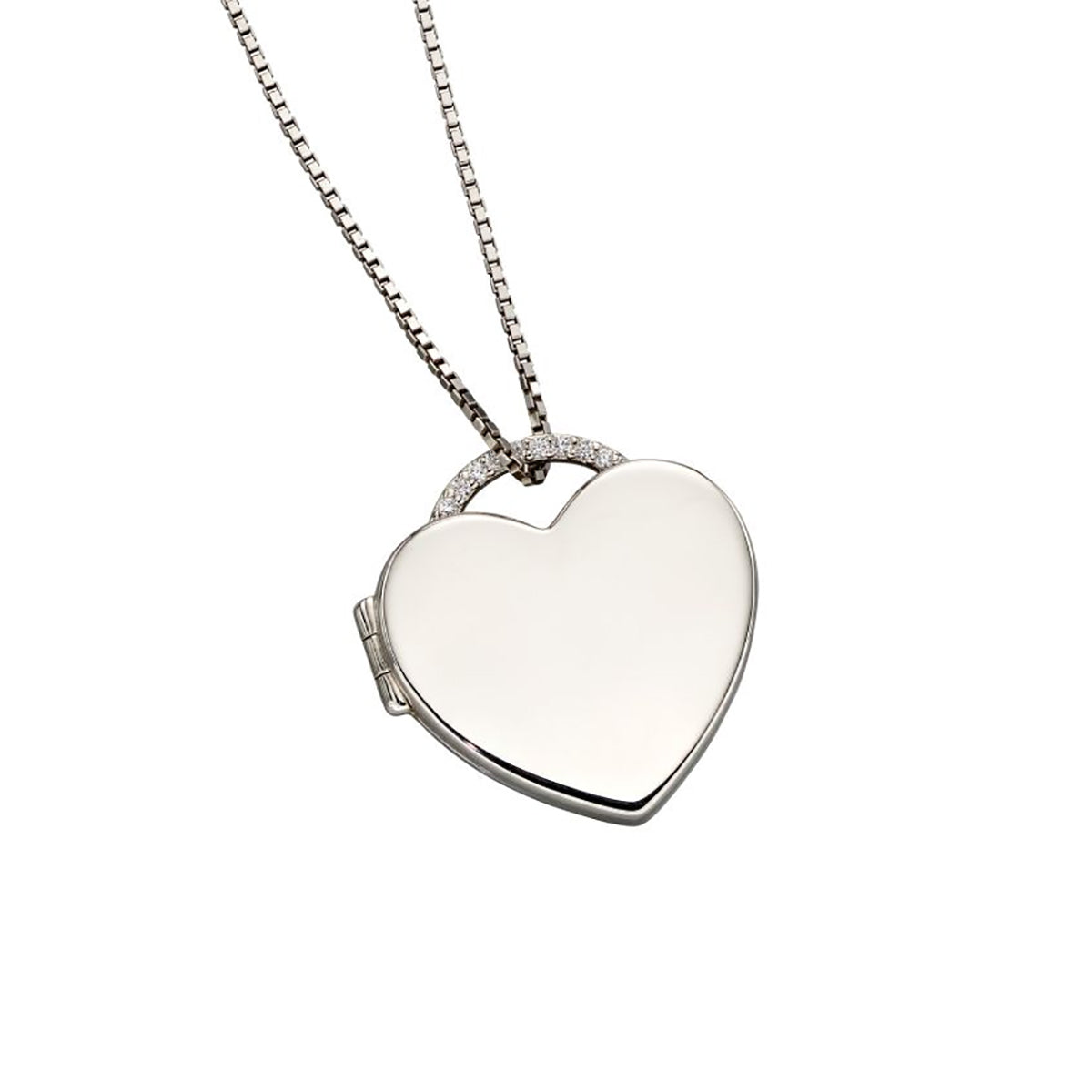 A beautiful modern take on a classic piece of jewellery. The traditional locket is embellished with a curve of clear cubic zirconia and highly polished Sterling Silver front and back.