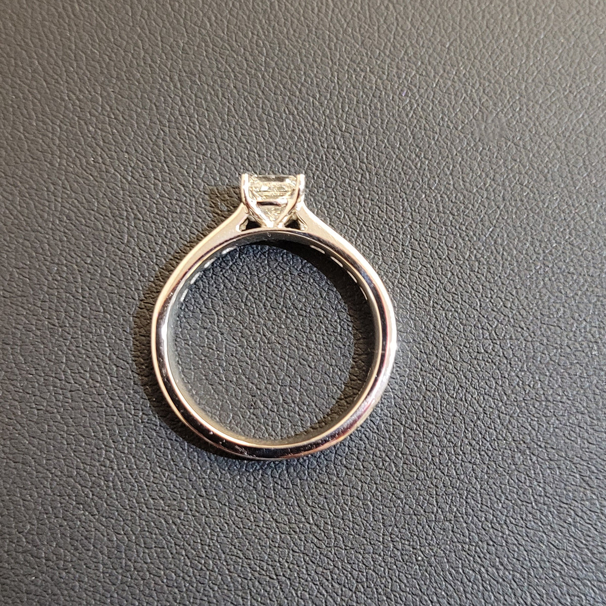 Princess cut diamond solitaire ring, with princess cut diamonds set into the shoulders.