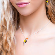 Sterling Silver Toucan Pendant Necklace With Carnelian & Onyx