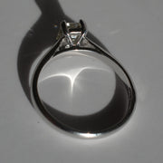 The 18ct white gold ring mount and four claw setting allow the diamond to be filled with light.