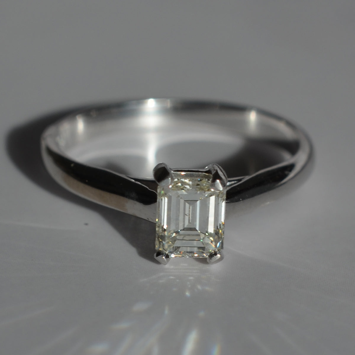 18ct White Gold Step-cut Diamond Solitaire Ring