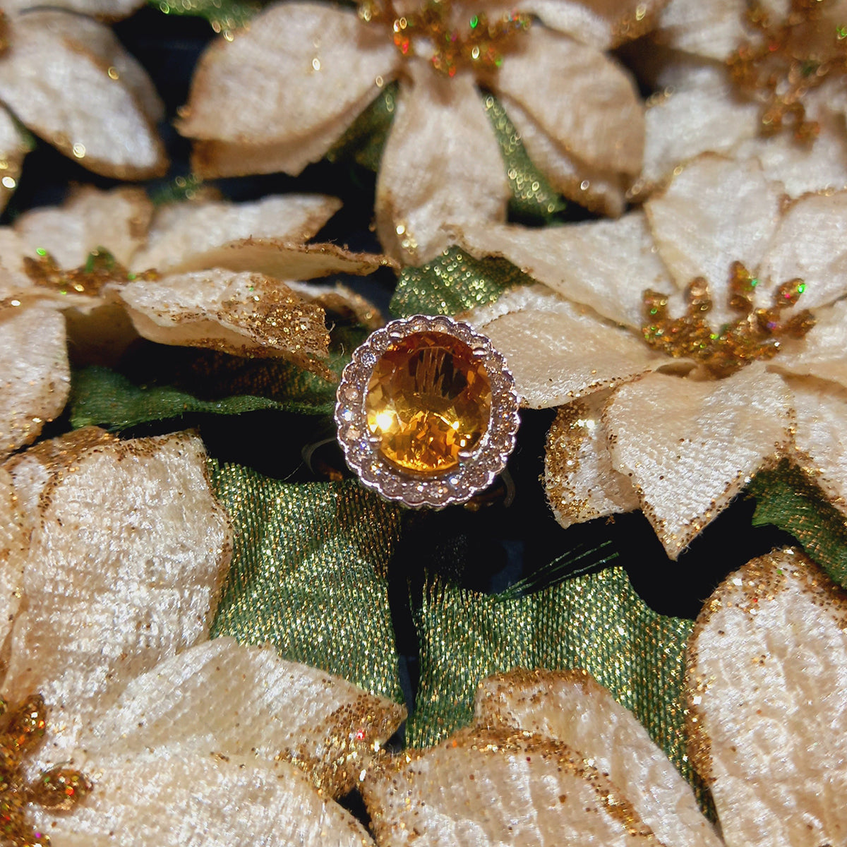 9ct Yellow Gold Citrine & Diamond Cluster Ring