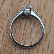18ct white gold diamond solitaire ring, with diamond set shoulders.