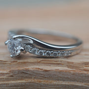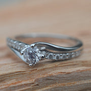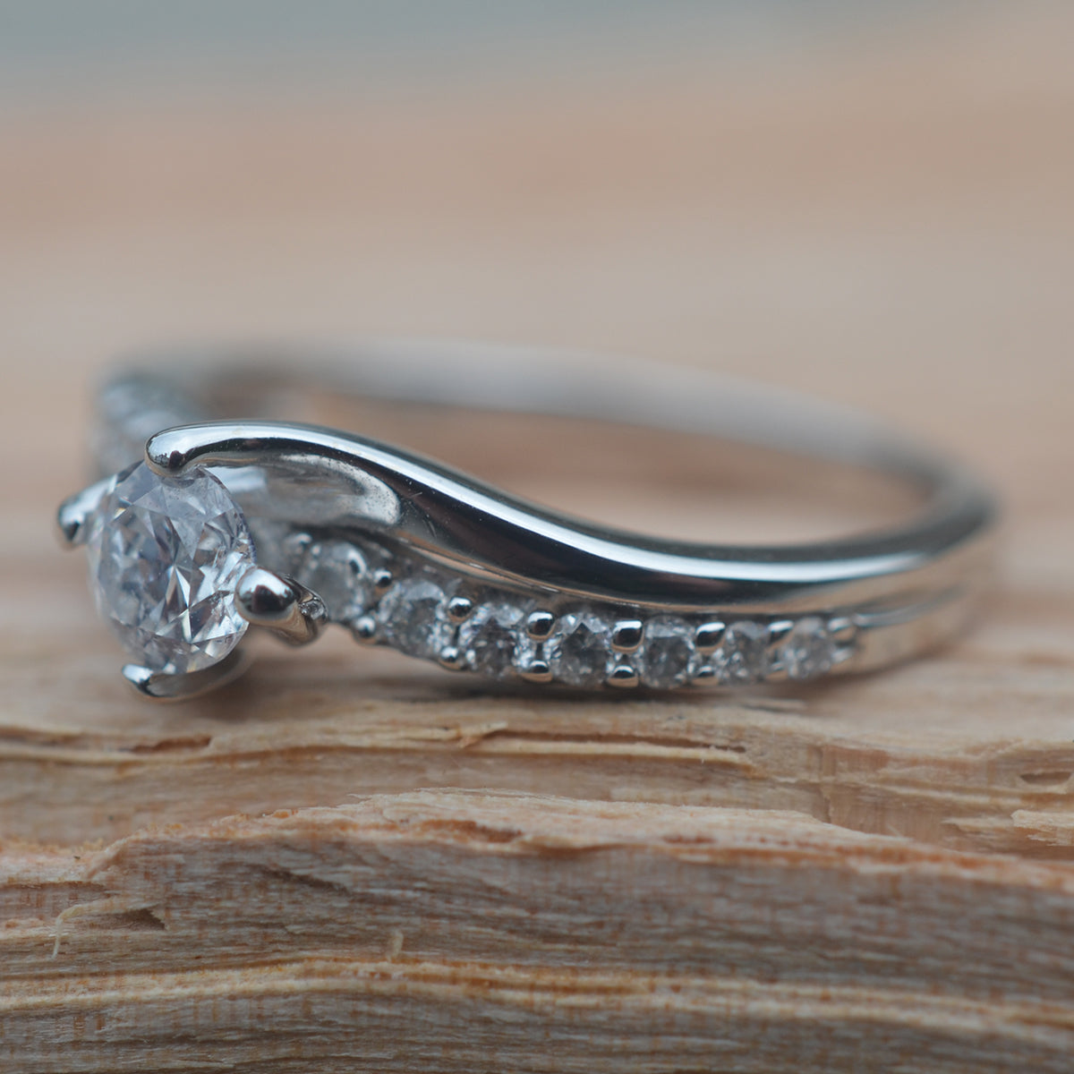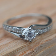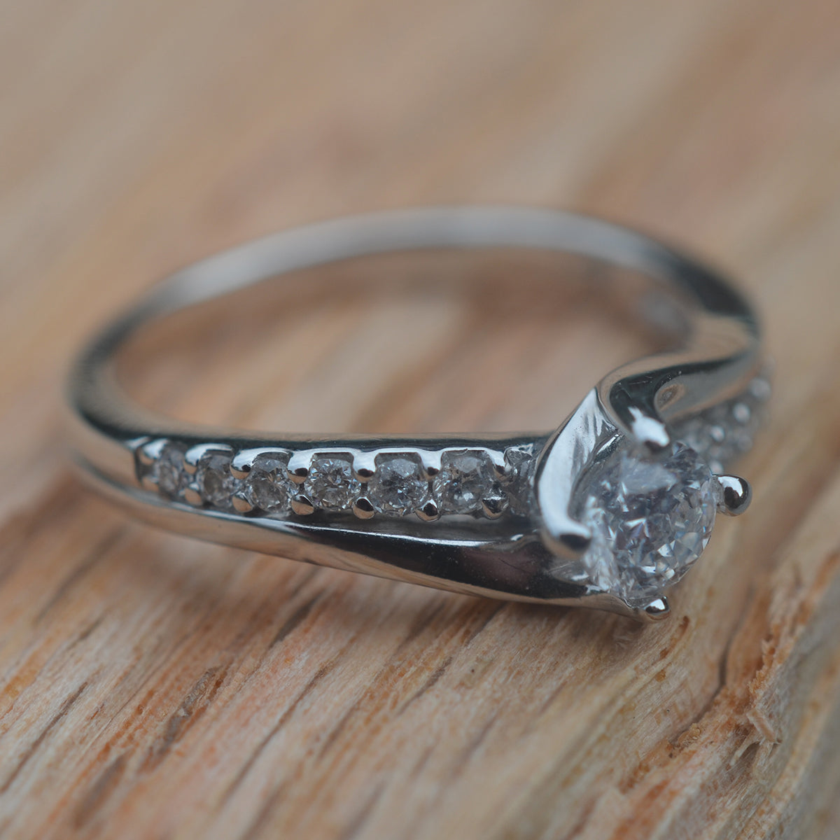 A timeless twist design, with diamonds set down each shoulder. Hallmarked in London.