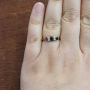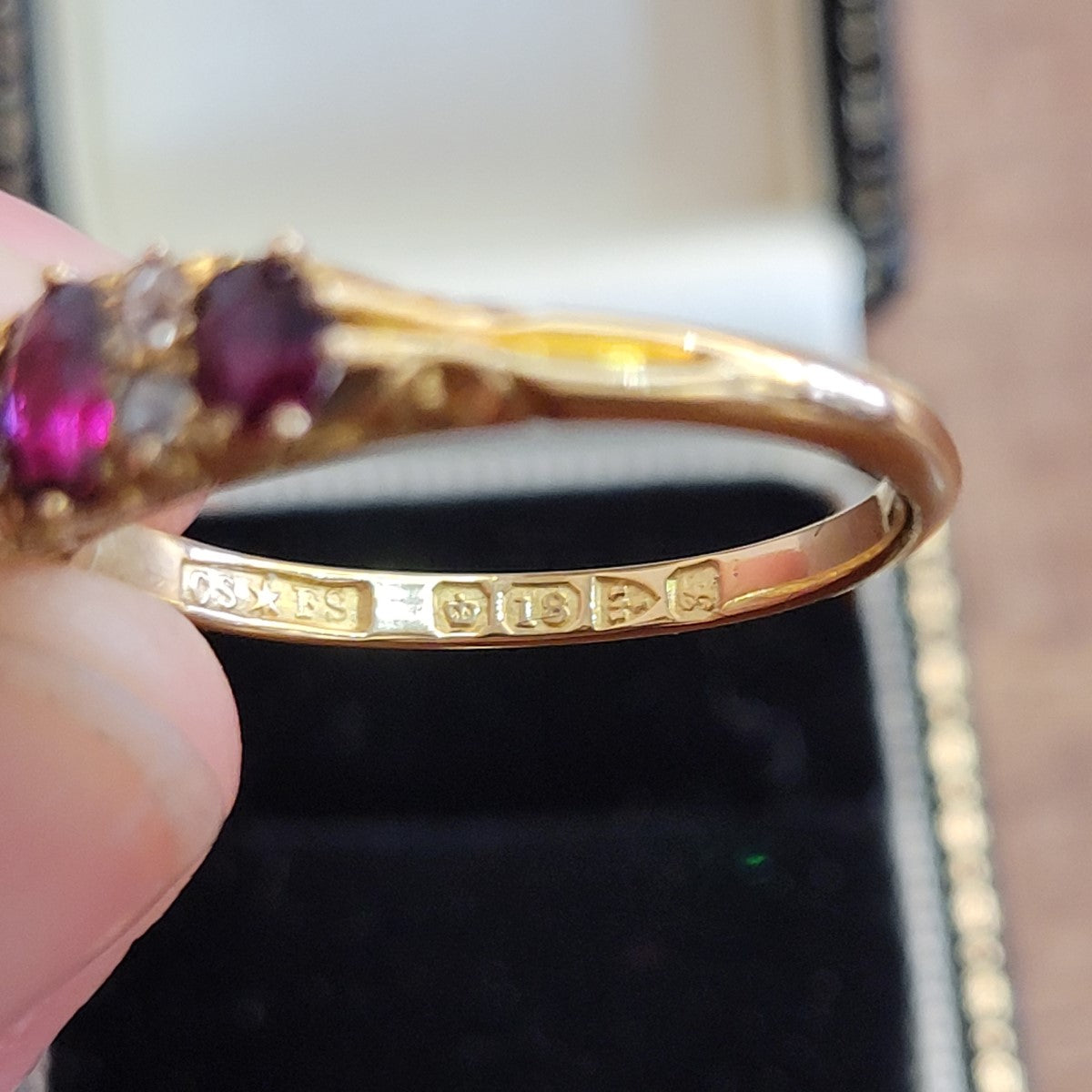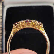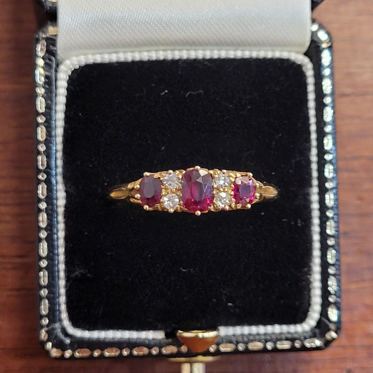 Featuring 3 oval graduated rubies inset with a pair of old-style faceted diamonds.