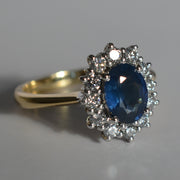 18ct Yellow Gold Sapphire & Diamond Oval Cluster Ring