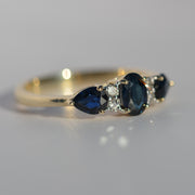 Classically styled but with an added element of the pear shape Sapphires making this ring even more elegant.