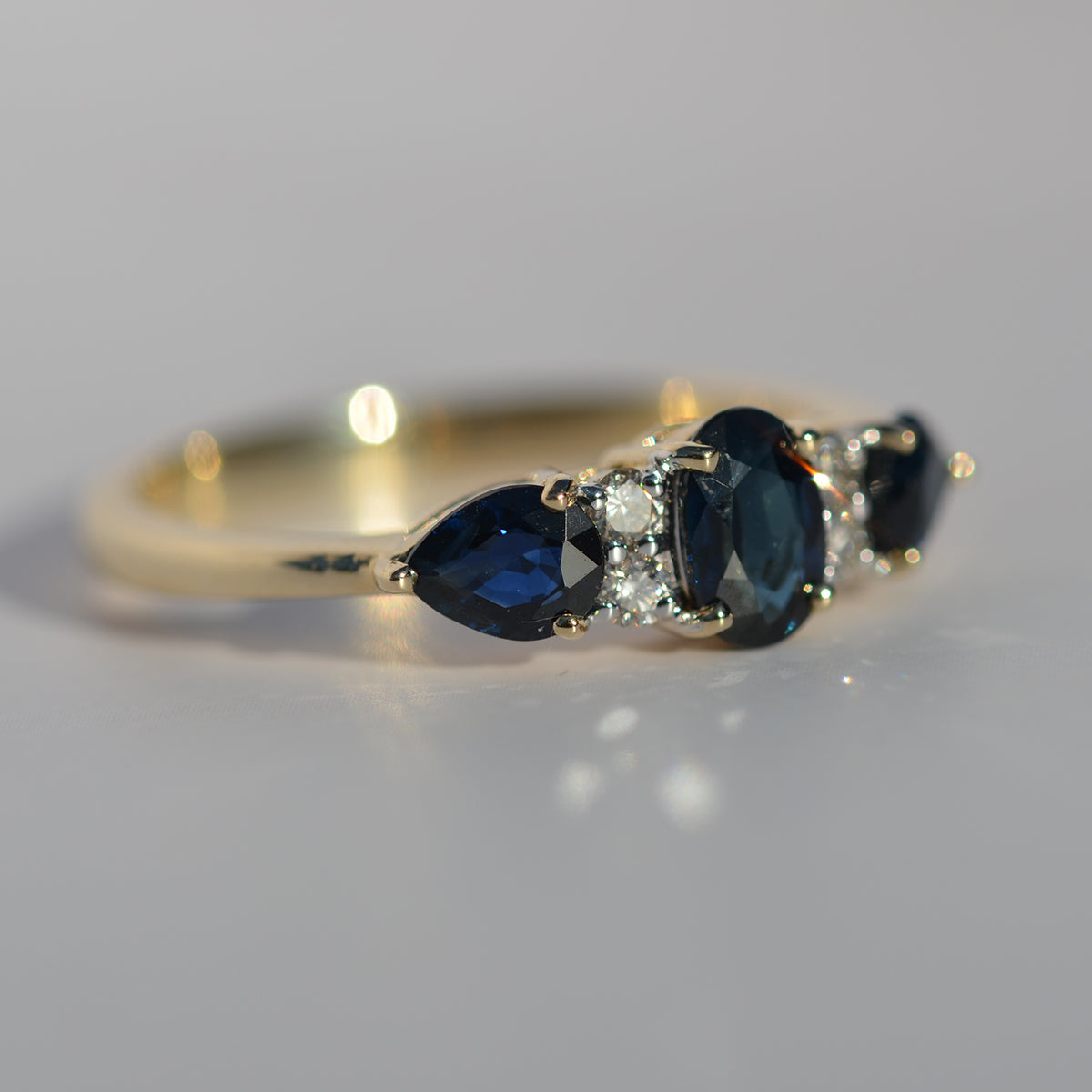 9ct Yellow Gold Trilogy Sapphire & Diamond Ring