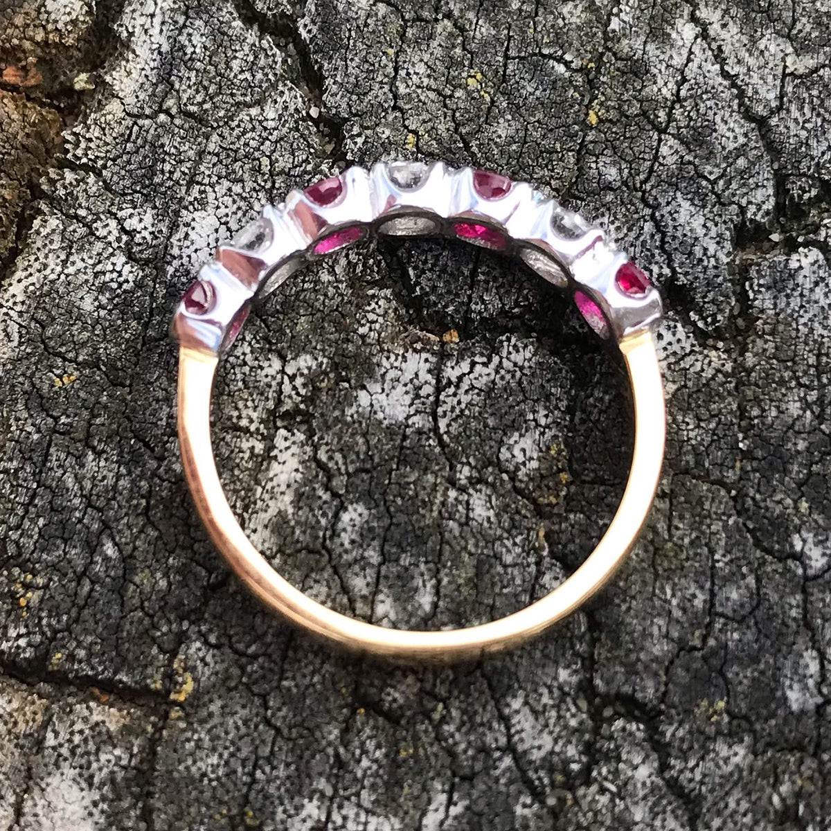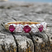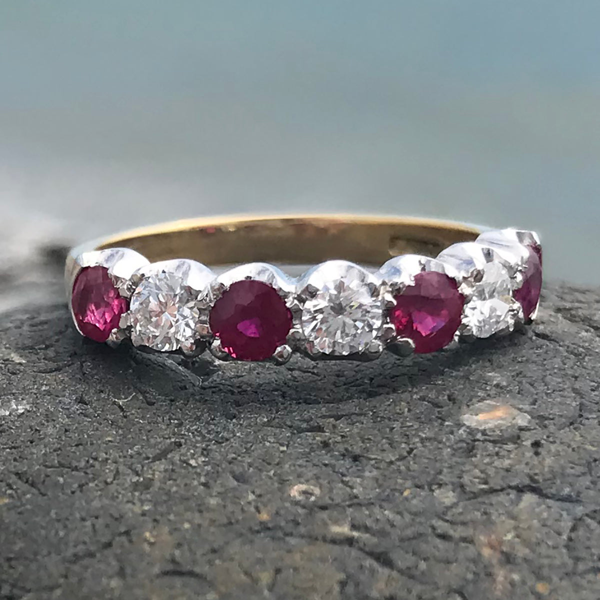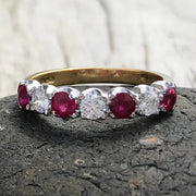 A classic and stylish eternity ring set with four Rubies and three brilliant cut Diamonds.