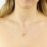 This attractive pendant with Diamond detailing along the palm fronds comes complete with a 9ct yellow gold chain measuring 18 inches.