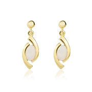 9ct Yellow Gold Single Oval Opal Drop Earrings