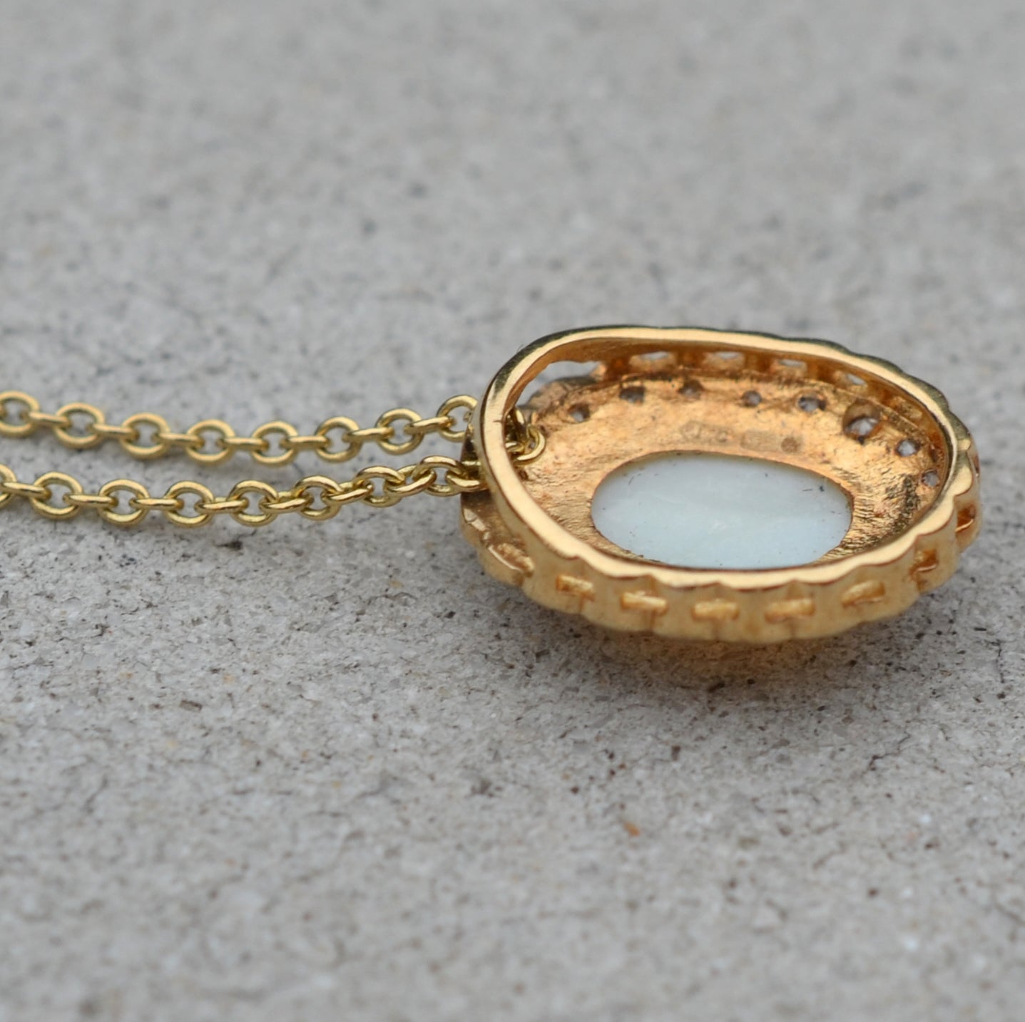 9ct Yellow Gold Opal & Diamond Pendant Necklace
